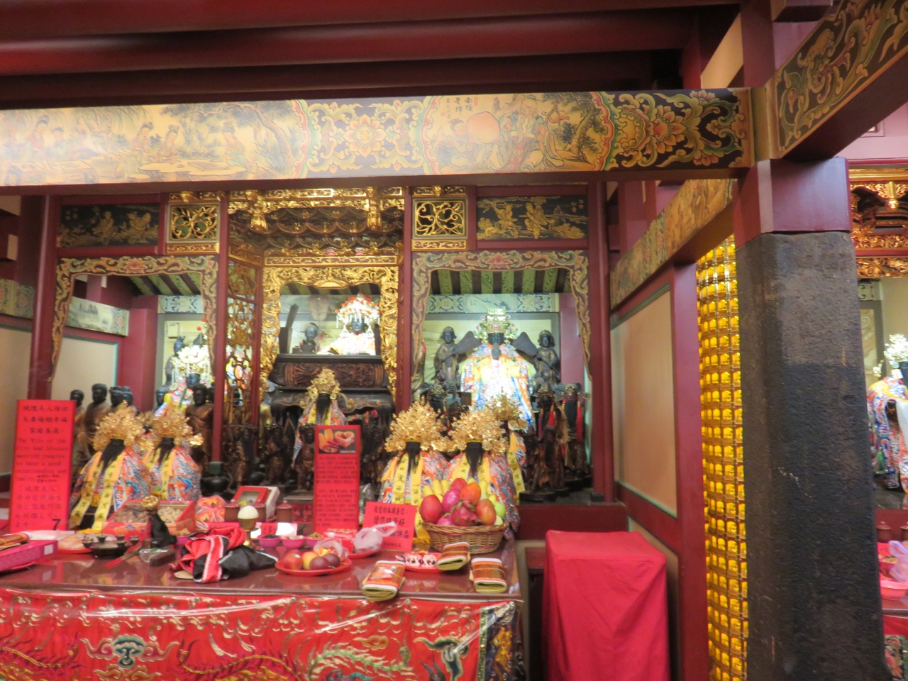 良縁をもたらすと言われる「月下老人」が祀られていていて、女性の参拝者を多く見かけました。廟内には家庭円満の神様も祀られていて、狭い廟内も人で賑わっていました。