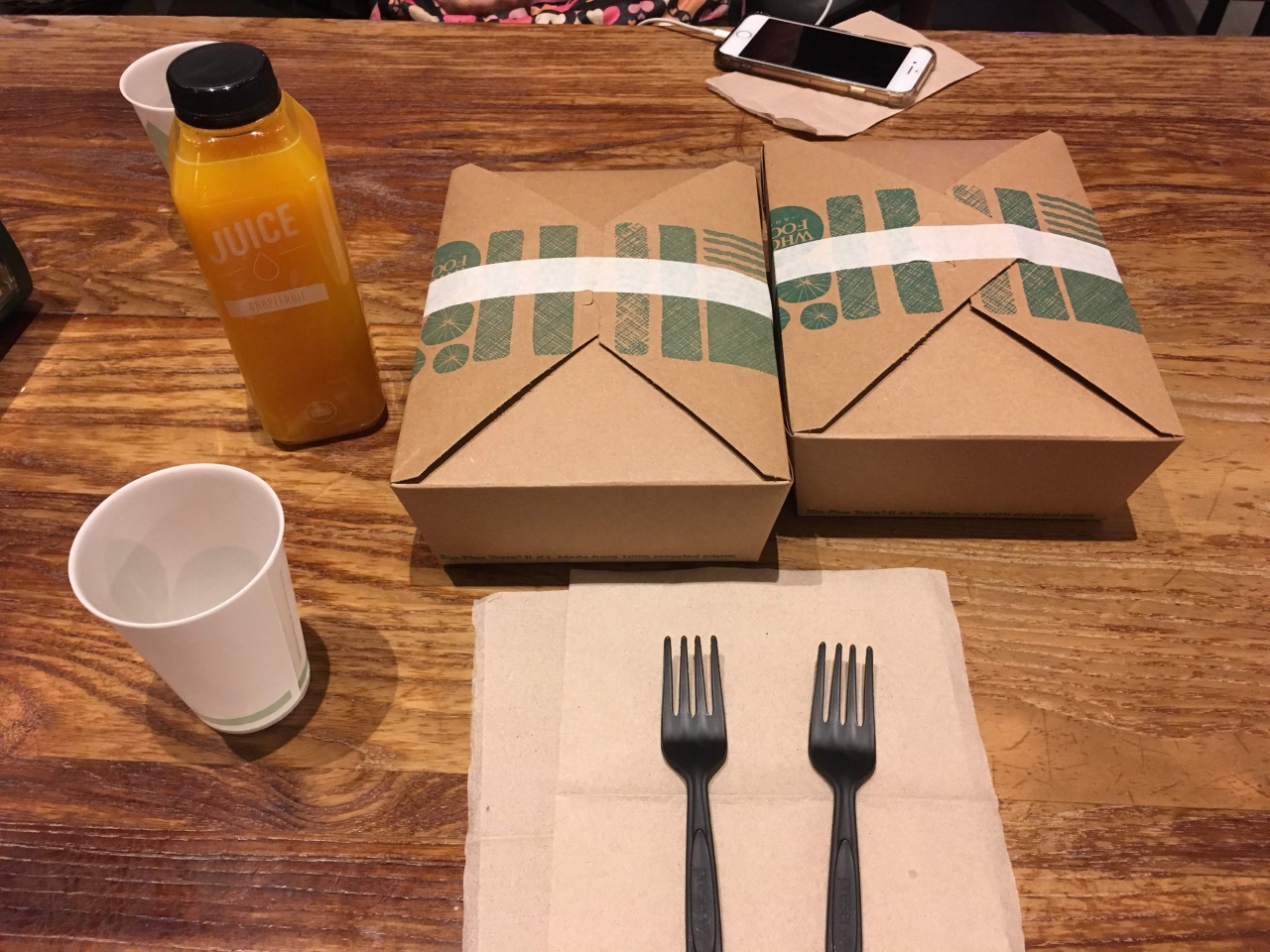 私たちはフレッシュなオレンジジュースを1本購入し、お惣菜と一緒にイートインコーナーでいただきました。