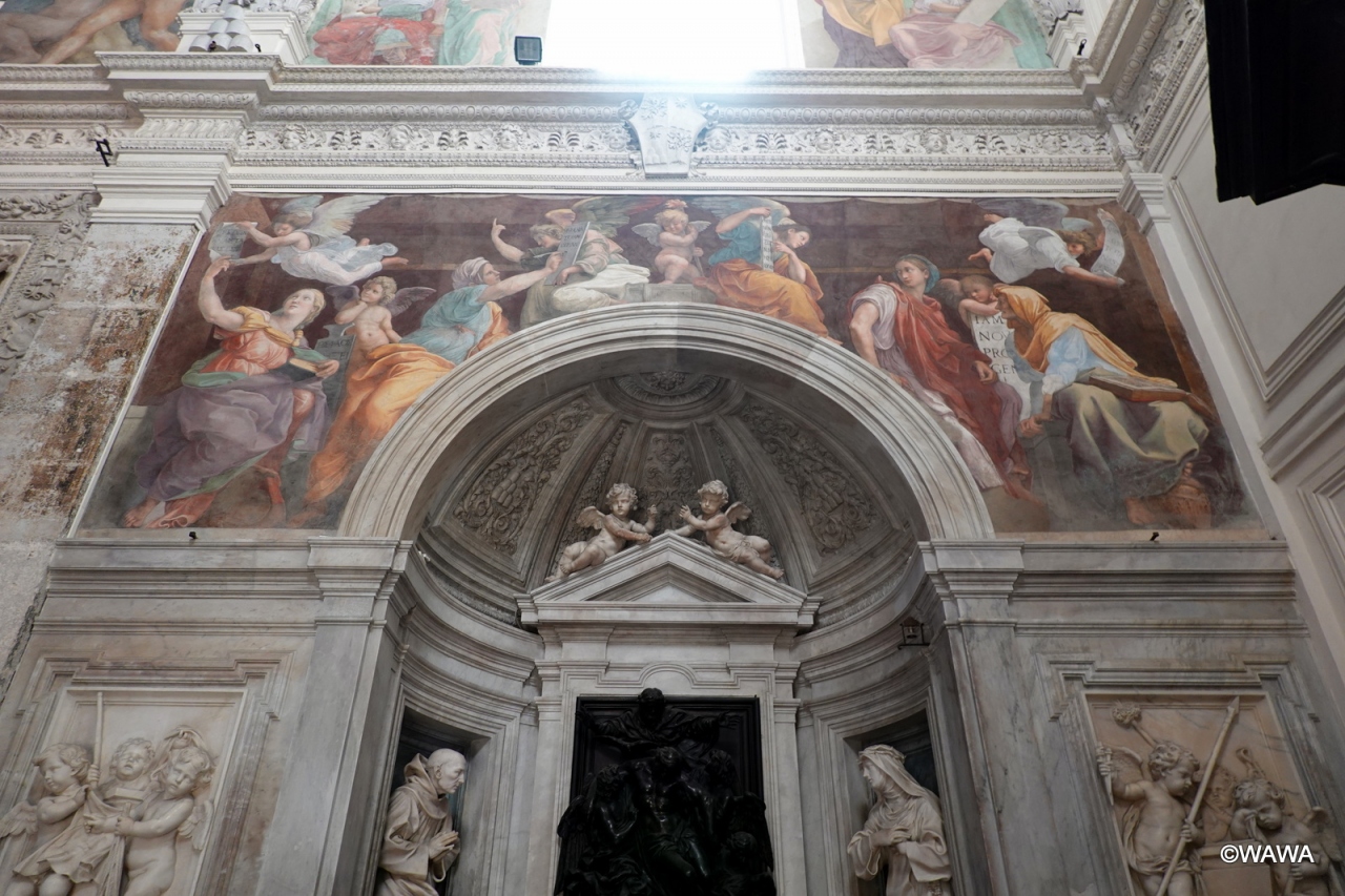 ラファエロのフレスコ画「巫女」などが見られる路地奥の教会