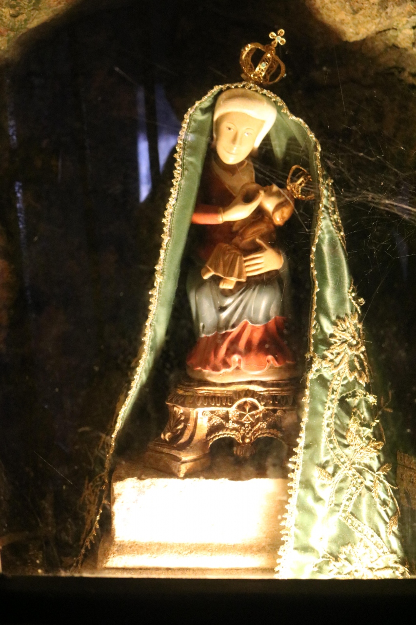とっても小さい礼拝堂です。馬が助けられたお礼に建てられた建てられたそうです。奥の階段を降りると、そこには、小さなキリストに父を与えるマリア様がいます。内壁はすべてアズレージョで埋め尽くされていて、とてもきれいです。