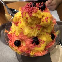 外に貼ってある写真を見てマンゴーと苺ミックスピンスを頼みました。写真は生の苺が飾ってありましたがブルーベリーと乾燥苺のフレークでした。。。美味しかったけれど見た目の違いに???と言う気持ちを強く持ちながら食べることになりました。