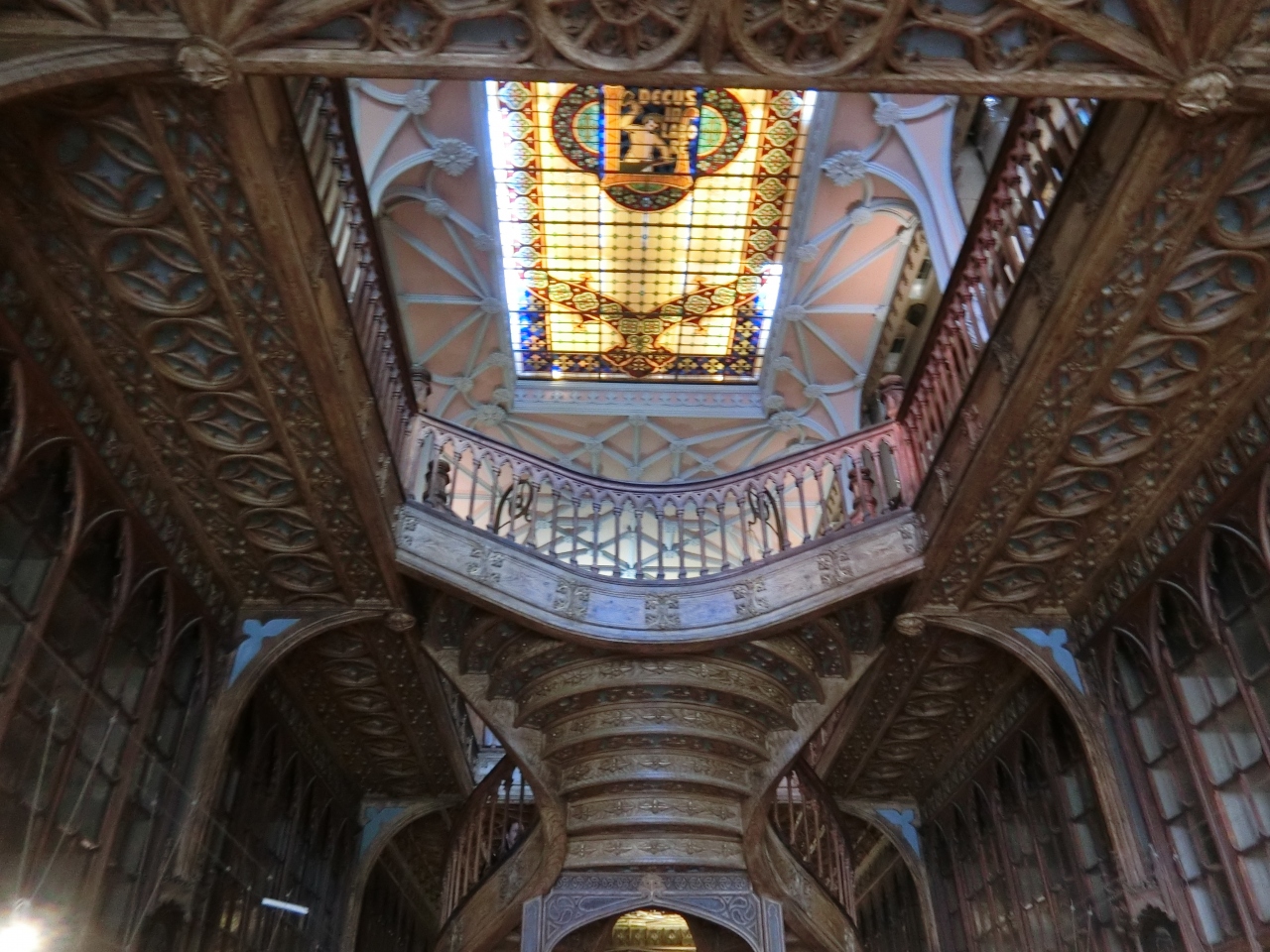 チケットは、書店の並びの角のお店で購入します。10時から始まりますが、10時前でも結構並んでいます。4.8ユーロかかりますが本を買うと充当されます。中に入ると人がいっぱいでなかなかうまく写真が撮れません。らせん階段は天国な階段と呼ばれここが一番美しい。1階の本は高いところまで積んであるので取るのが大変そうです。