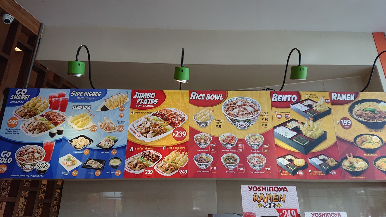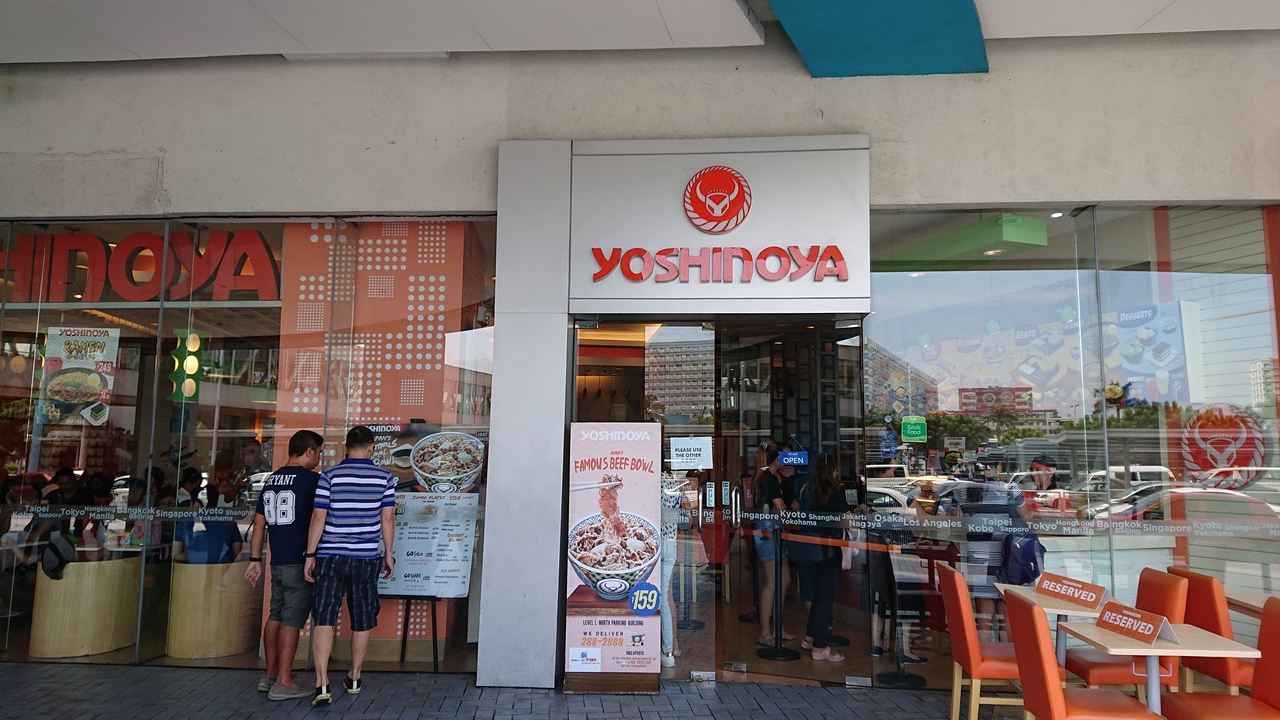 SM Mall of Asiaにある吉野家(YOSHINOYA)。オレンジ色と牛のマークですぐわかります。メインは牛丼で158ペソ(=350円くらい)ですが、ラーメン、寿司、天ぷら、をはじめ、メニューが豊富。日本にはないコンボメニューもあり嬉しい。注文すると係りの方が運んでくれます。牛丼の味は日本と変わらない気がしましたが、Beef Yakinikuの味付けはフイリビン人好み の甘い味付け。ご飯は日本のような粘りけのあるものではないです。牛丼の場合は丼ぶりで提供されますが、コンボは低めのプレートで提供されるので、自ずと汁だくになってしまいます。また、スプーンで食べるのもフイリビン流。デートで利用しているお客さんもいたりと、日本ではない使い方をしている方も。ご飯好きのフイリビンでも根付いている印象。