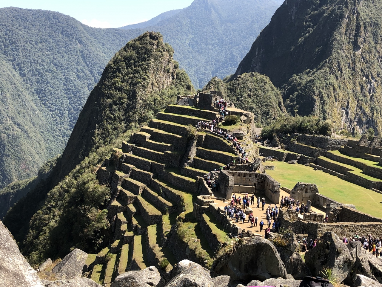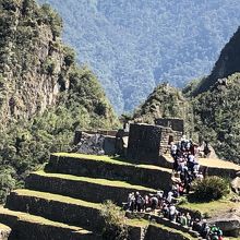 ツアーで反対側から眺めました。入場するのには時間制限があり、大勢の人がありのように一列になって、行列しているのが見えました。崩壊を防ぐためらしいです。マチュピチュの最高点にあり、高さは1.8mだそうです。