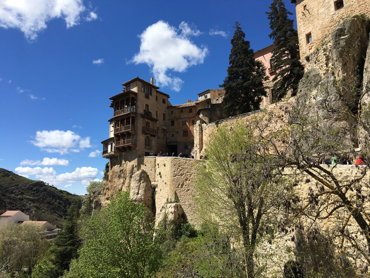 クエンカの一番の見どころで、一番のシンボルがこの宙づりの家だと思います。崖からせり出るようにして建っています。中は抽象画の美術館になっています。たくさんの人で賑わっていました。夜はライトアップされるので夜の風景も素敵です。