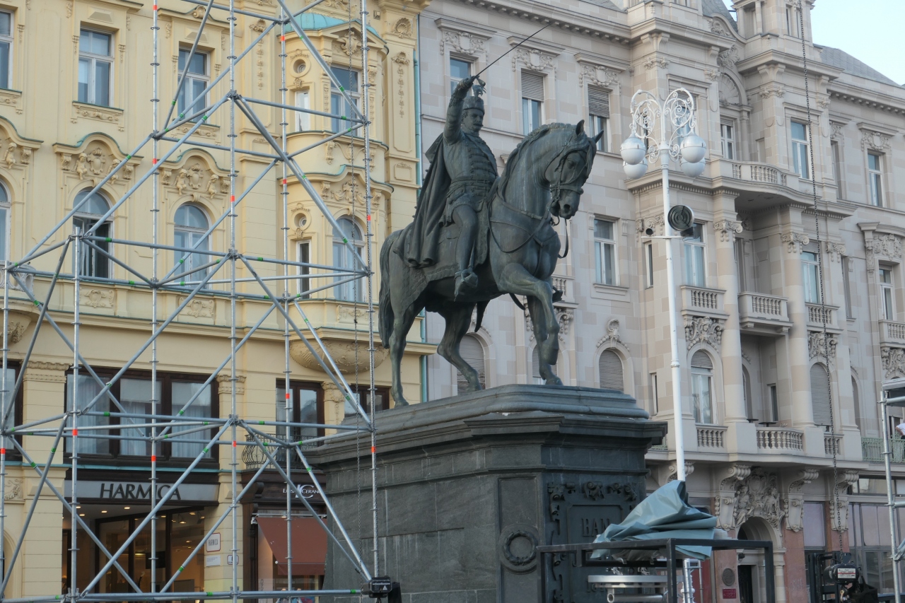 この騎馬像は1886年に設置され広場は「イエラチッチ総督広場」と名付けられていましたが、旧ユーゴスラヴィア時代の1947年に像が撤去され、広場名も「共和国広場」に改称されていました。1991年のクロアチア独立に伴って騎馬像が広場に戻され、名称も「イエラチッチ広場」に再改名されたそうです。この像は歴史に翻弄された経緯もあるようです。