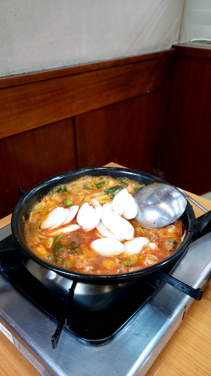 釜山に行ったら行ってみたかったケミチッ。平日の昼間でしたが、観光客が絶えず来店してきました。タコとコプチャンの鍋にしましたが、程好い辛さで美味しかったです。お店の方のサービスでトックを追加で頂きました。