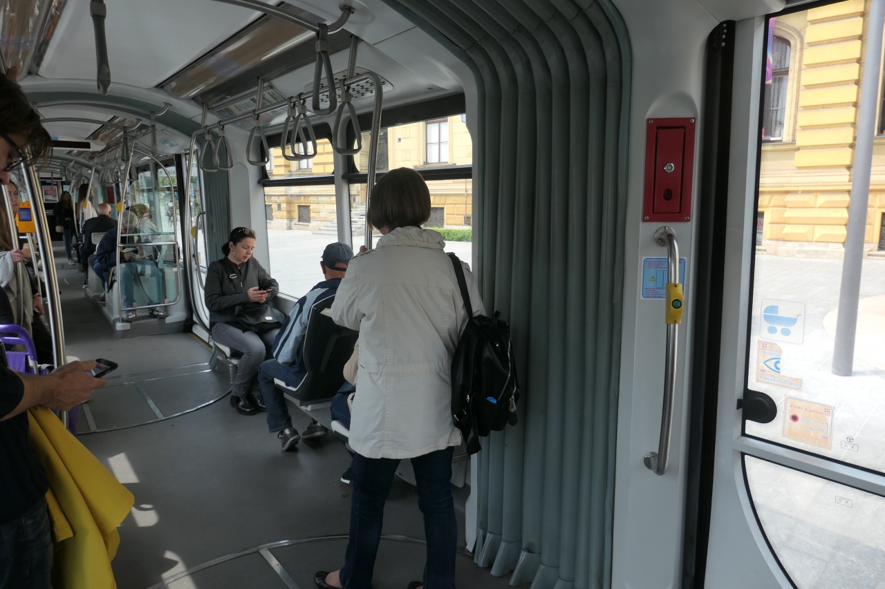 レンタカーでザグレブを訪問しました。町中に駐車場は多くありませんし、一方通行も多いので、ホテルの従業員からトラムでの移動が便利だと勧められました。道路沿いにあるキオスクで乗車券を購入すると格安で、30分以内の一方向乗車で4クーナ(約65円)です。トラム内で運転手から購入すると15クーナとなります。トラムに番号が路線別に付けられているので、あらかじめ利用する路線をチェックしておけば問題ありません。トラム利用者が多いので車内は結構混み合っていました。トラムは地上を走りますので、途中の景色も楽しめて、料金も安いのでお勧めです。
