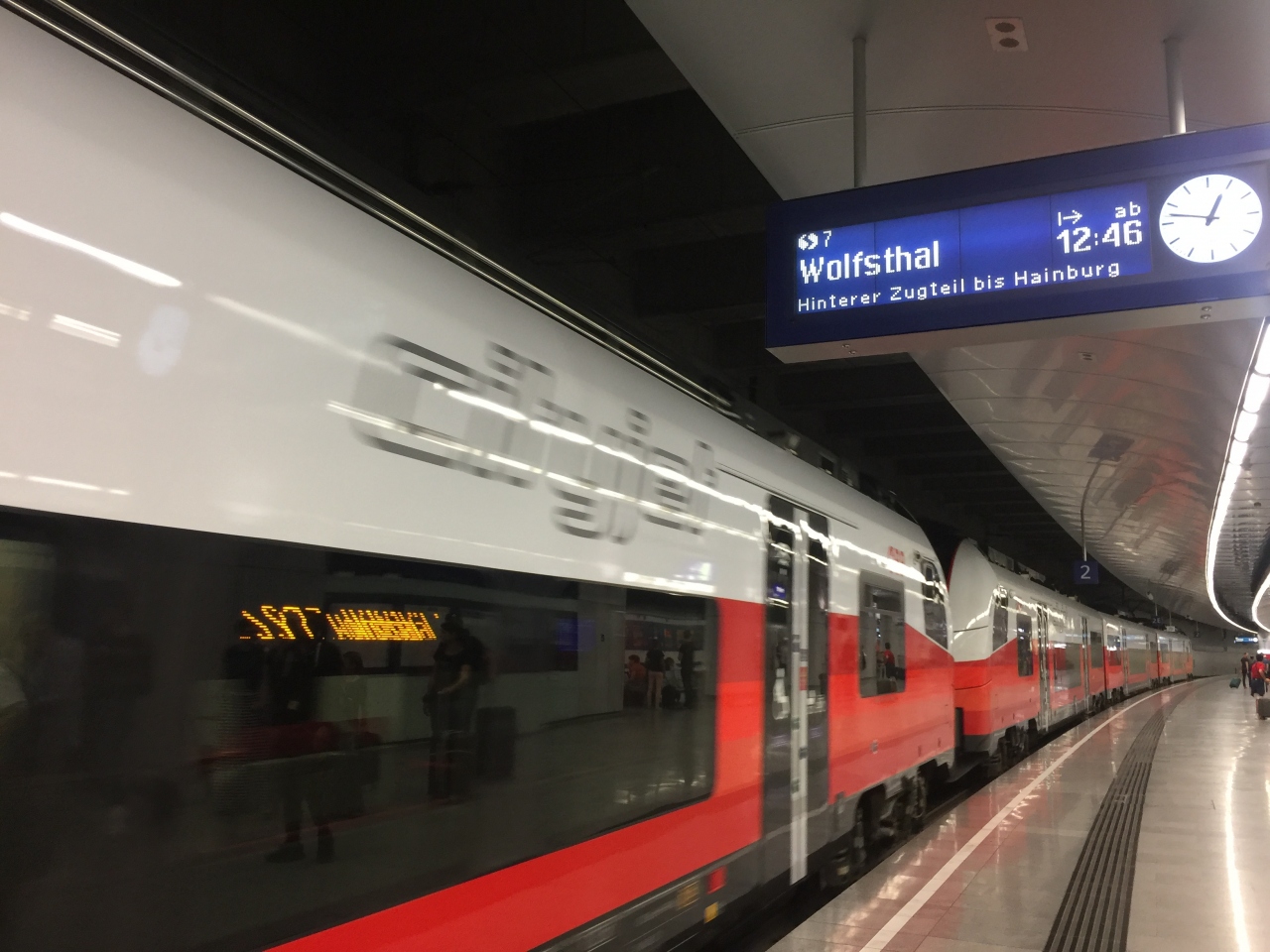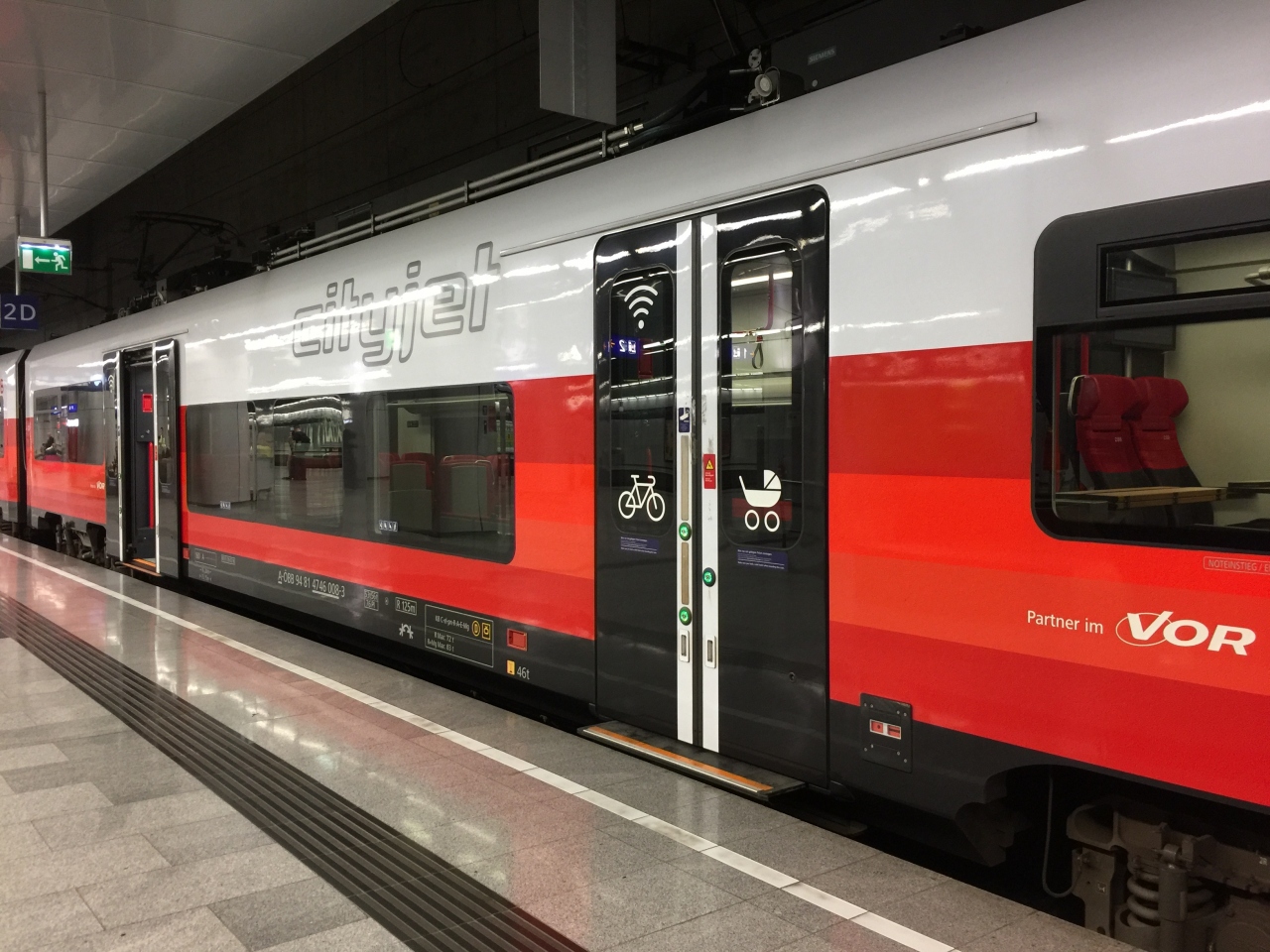 空港駅からRailjetに乗ると、市内の中央駅 (Wien hbf)まで15分で、お安く移動できます。