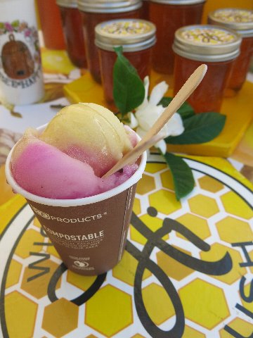 魅力的なショップがずらり。今回は、蜂蜜をたっぷりかけたフローズンドリンクを頂きました。