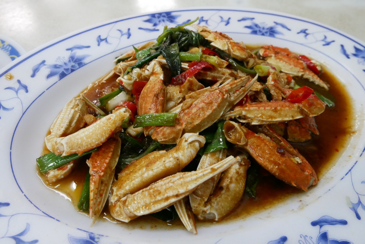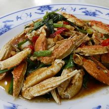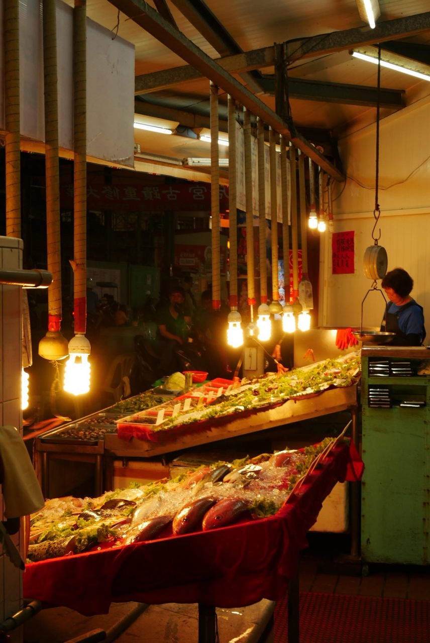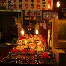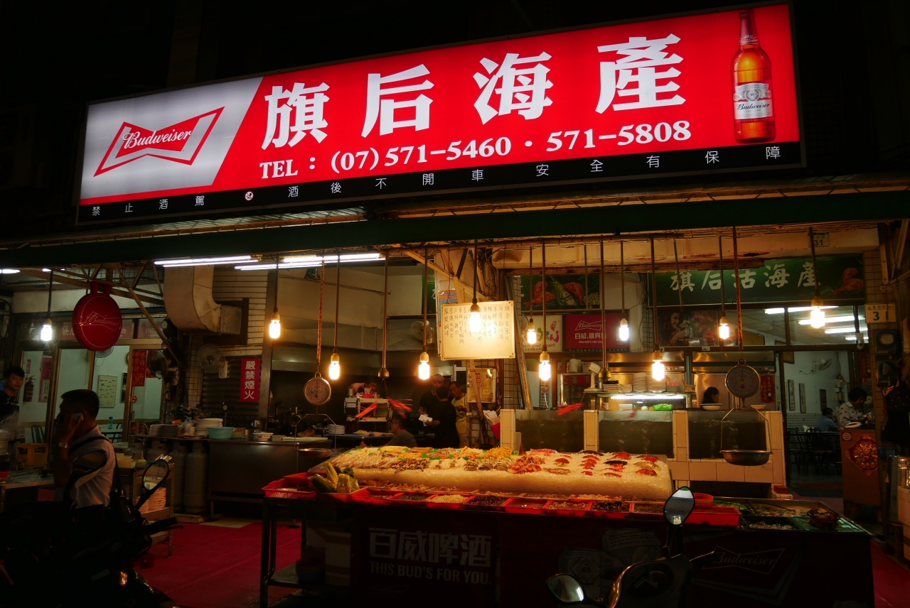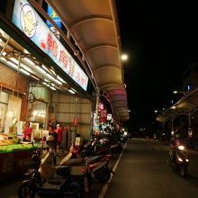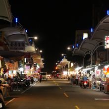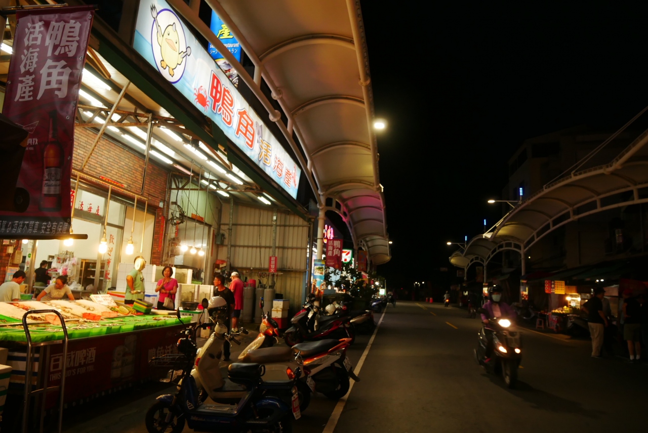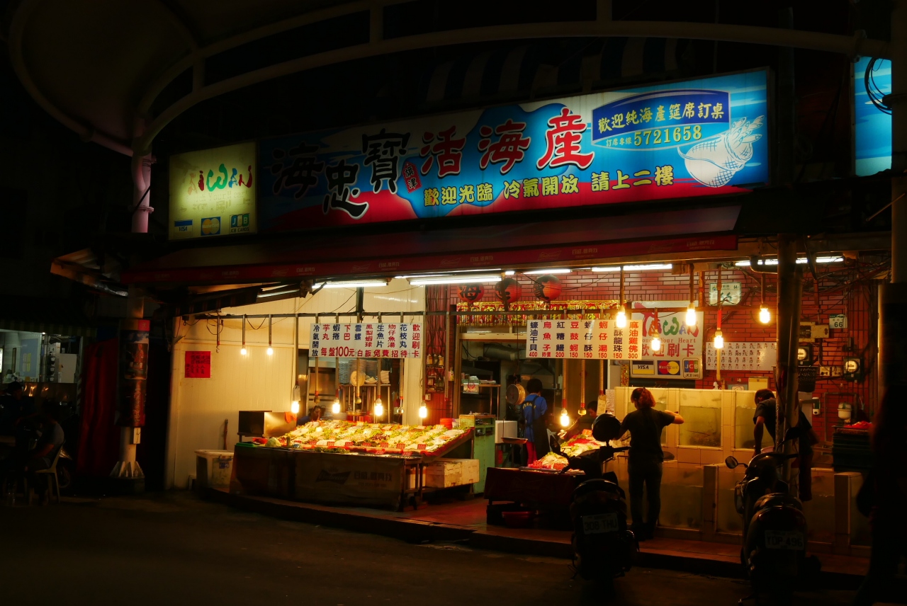 歩いてすぐのメインロード沿いに海鮮料理屋が並ぶ