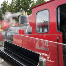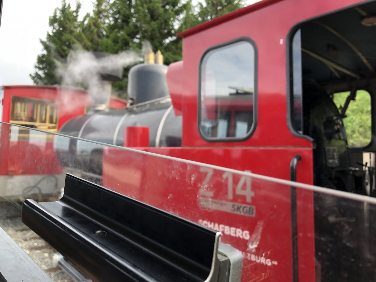 赤いSLに乗り、40分かけてゴトゴトとゆっくり登ります。最初のうちは左側が眺望がよく、頂上に近づいたら右側もよいということでしたが、両方見た結果では左のほうがよさそうです。天候によっては、眺望が望めないことがあるかもしれませんが、短い滞在では仕方がないかもしれません。