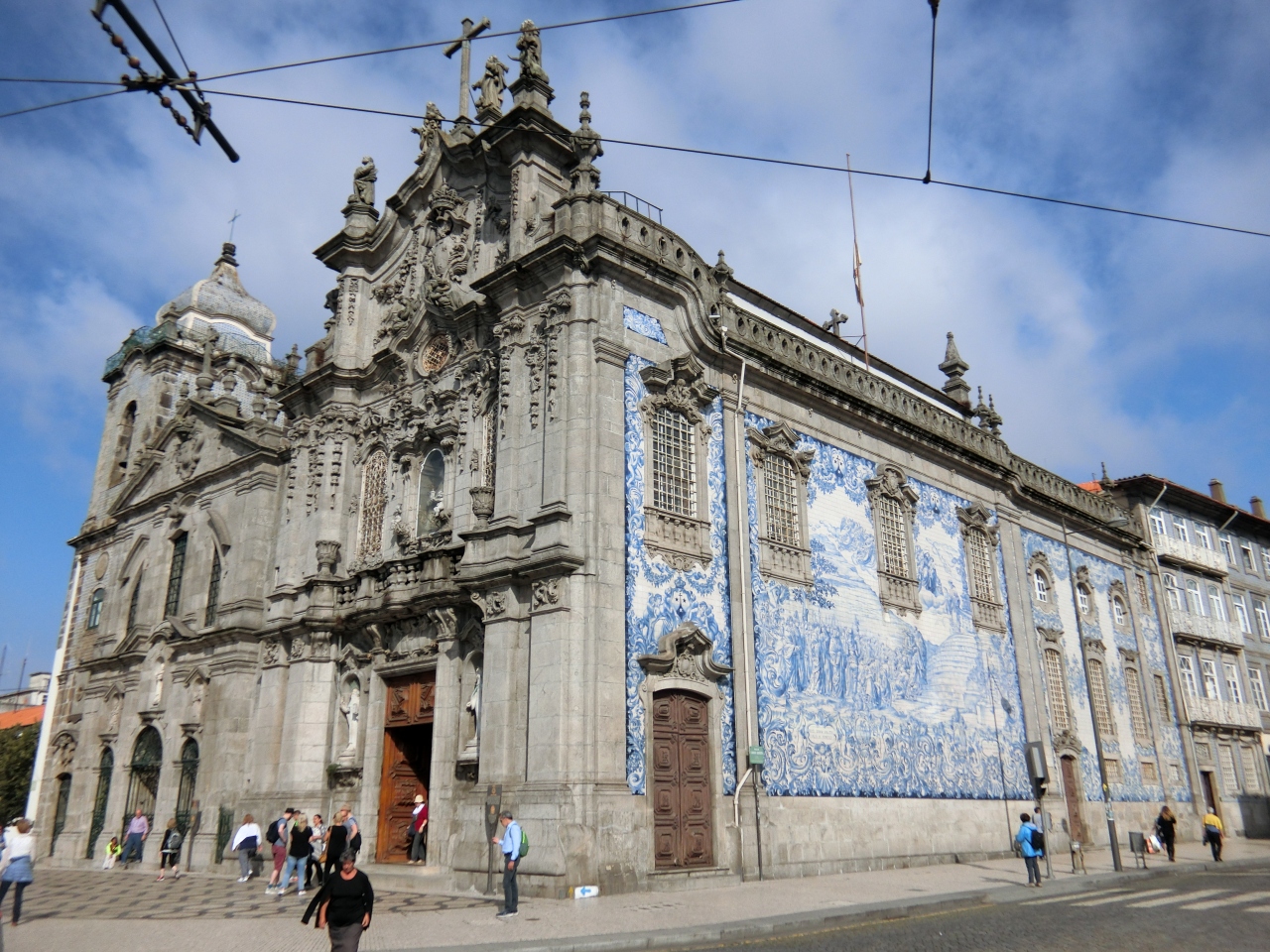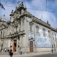 この教会は1つの教会ではなく、よく見ると2つの教会が並んで建っています。右にあるのがカルモ教会です。カルモ教会は側面にあるアズレージョがとても美しい。1912年に作成されポルトガル最大級だそうです。教会の中は金の装飾がすごく、キラキラしている教会でした。