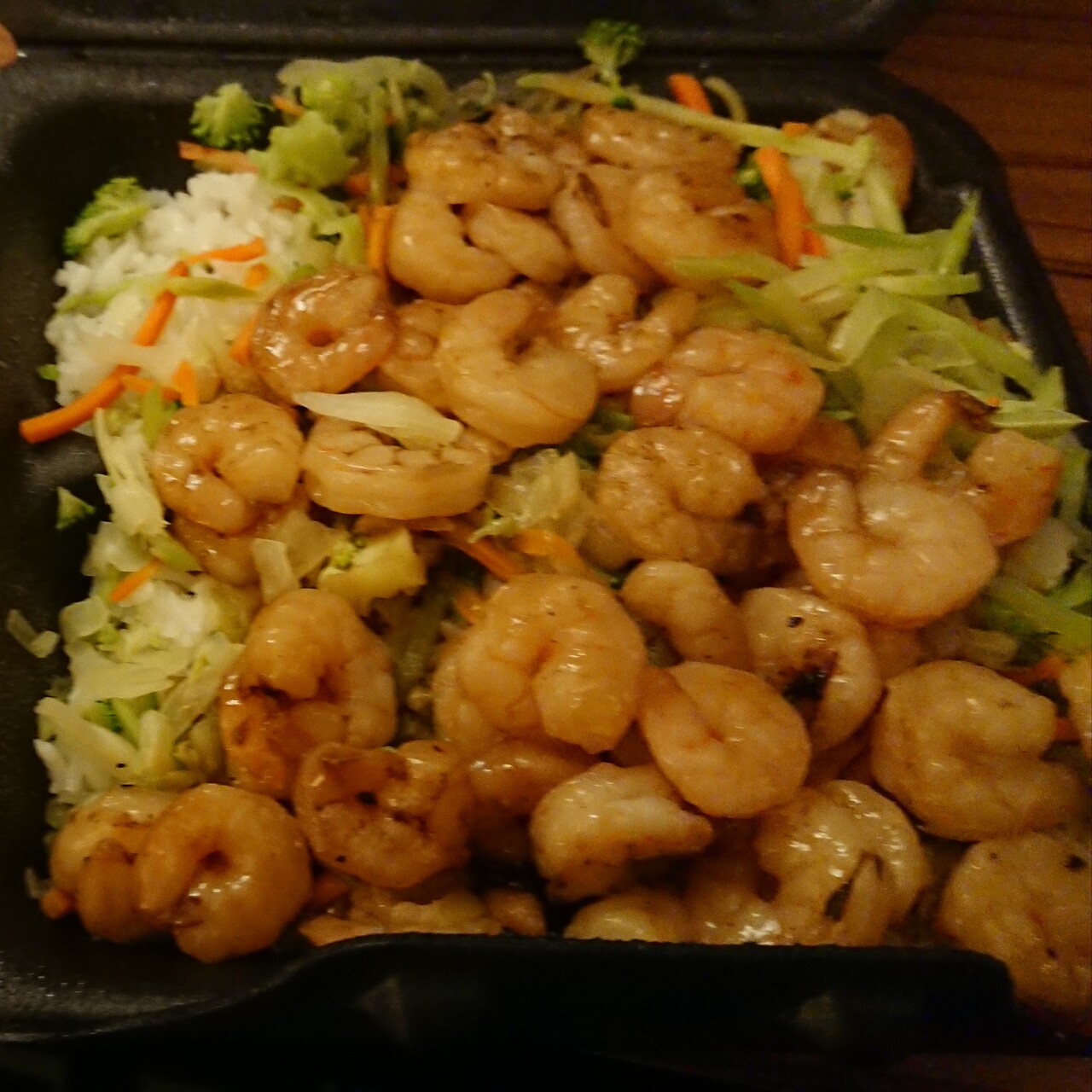 とりあえず天ぷらのロールとエビの照り焼きを注文。ロールはパックしたものを出してくれます。テリヤキは白いご飯にグリルしたエビと生野菜が載っていてかなりのボリュームがあります。エビは味が薄かったのですが、チリソースをかけるとメキシコ風の味が、引き立ちます。オススメはチキンかな?