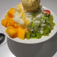 フレッシュマンゴーのみのかき氷は売り切れでしたが、3種のフルーツのものはあったので注文しました。