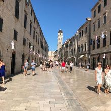 ピレ門を入ってすぐの場所にオノフリオの大噴水があります。大噴水からルジャ広場までまっすぐ続く道がプラッツァ通りで、旧市街のメイン通りだと思います。朝早く行ったので、まだそんなに混雑していませんでしたが、帰りはごった返していました。
