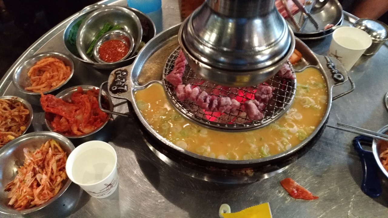 17時前ごろいったのですが、金曜なのもあるのか人が結構入ってました。そして帰るころにはかなり店内は満席。外の席はあいてました。サムギョクサルをオーダー。かなり火力がつよくて、ちょっと焦げたのが残念。卵の液体を流せるようになっていて、そこで茶わん蒸しが自動でできて、それがおいしかった。