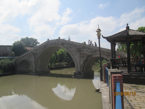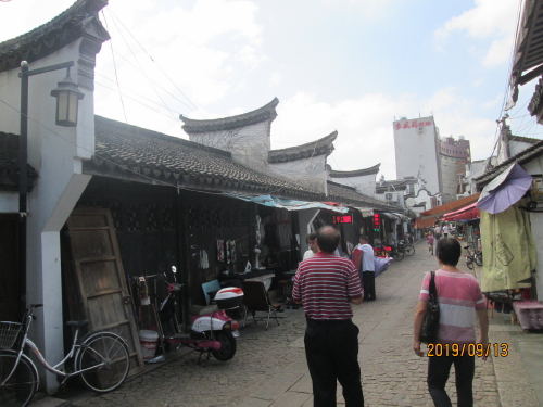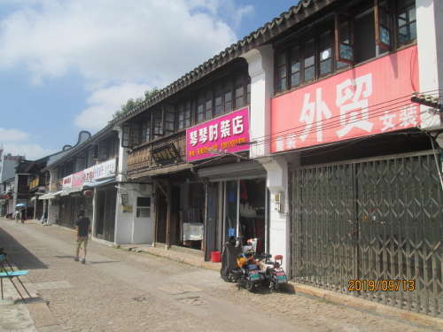 高橋故鎮・西街は東街に続く水路沿いの商店街。高橋故鎮のメイン通りです。商店街も賑やかで、歴史建築も多く残っています。歴史建築は無料で中を見学出来ます。 前回9年前の2010年3月に訪問、修復作業中でした。完成した老街を見にきました。広い浦東新区の黄浦江と長江の合流地エリア点、北の端です。陸家嘴の超高層ビルの建ち並ぶ新都心と比べ、開発の手が遅れたと言うか、昔ながらの生活を見る事が出来るエリアです。