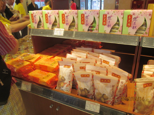 2019年の中秋節は2019年9月13日(金)です。9月13日(金)~9月15日(日)の間は3連休です。現在月餅の販売合戦の真っ最中。今年は13日と早い中秋節の為、上海蟹の成長が間に合わず、小ぶりで我慢せざるを得ないようです。昨年は新製品の牛蛙(食用ガエル)月餅で話題を撒きましたが、やはり行き過ぎたと見えて、今年の月餅は肉、蟹、鮑、海老、ぐらいまで、鮮肉月餅が主体です。私はやはり小豆が一番です。杏花楼は福州路にある上海一の中華菓子の老舗名店です。餡の種類もが多く、好きな物を選べて美味しい。