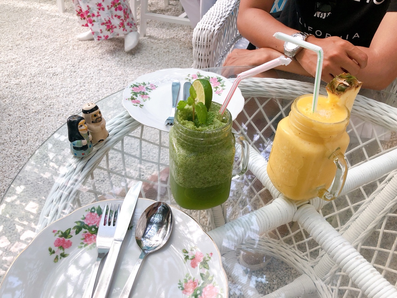 観光ガイドブックにも載ってたアラビアンティーハウスはバスタキヤ地区の入り口付近にありました❤︎店内はブルーとホワイトで家具とか全てが可愛いです。ここでは飲み物だけ頼んだけど、お値段は高い。でも味は美味しい❤︎