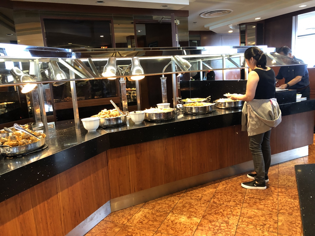 行く人とレストランに行く人がいてエレバーターは二台しかないので