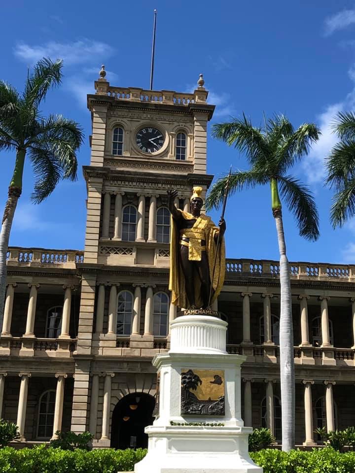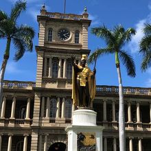 アリイオラニ ハレの建物の前にこの銅像があります。