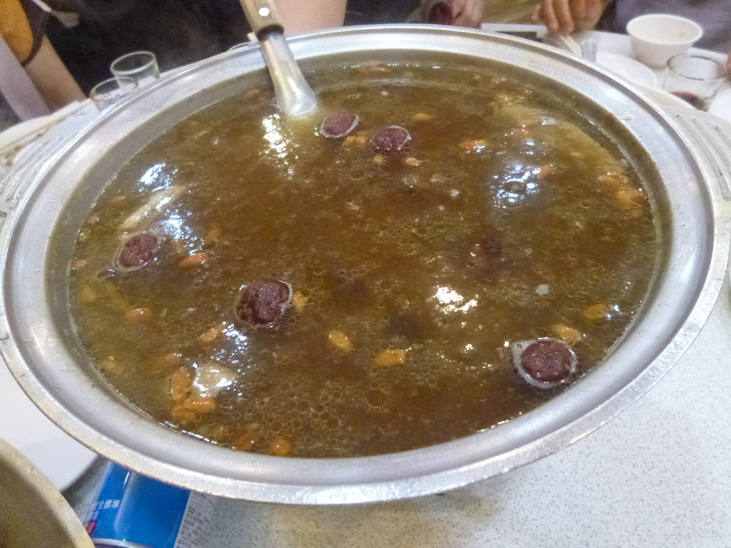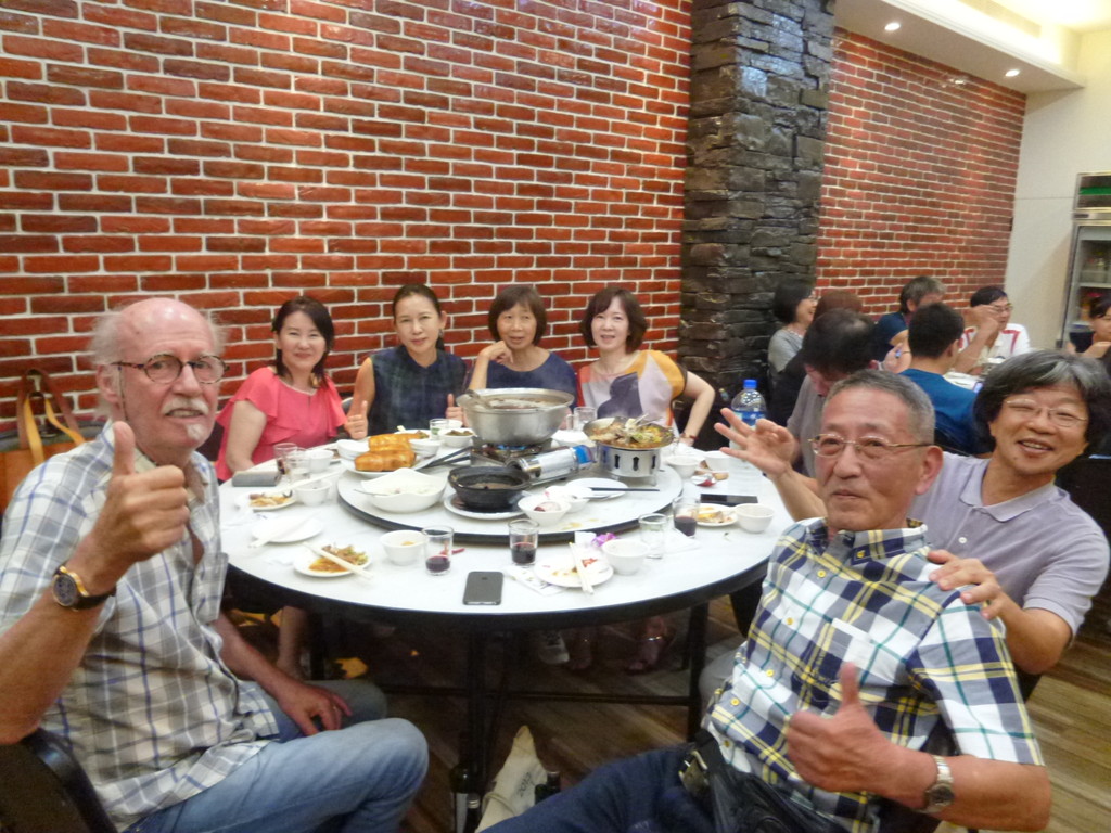 お酒を飲みながら、注文してくれた豆腐料理、鶏料理、魚料理、スープ、排骨煮込み、煮込み、パン、蝦料理、烏賊揚げ、葱爆牛肉、卵料理、茹で筍、大学芋などを美味しくいただきました。最後は、お店のご主人も加わり、楽しい宴となりました。
