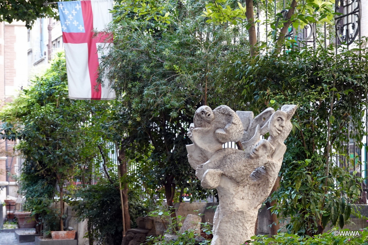 ホテルの2軒隣だったので毎日前を通りました。柵越しに見える庭に置かれたアートが面白そうなので中に入りたかったのですが、早朝はホームレスのオッちゃんが門前に寝そべり、昼はコンサート準備で閉門、夜はコンサート会場になっていたので中に入る機会に恵まれませんでした。