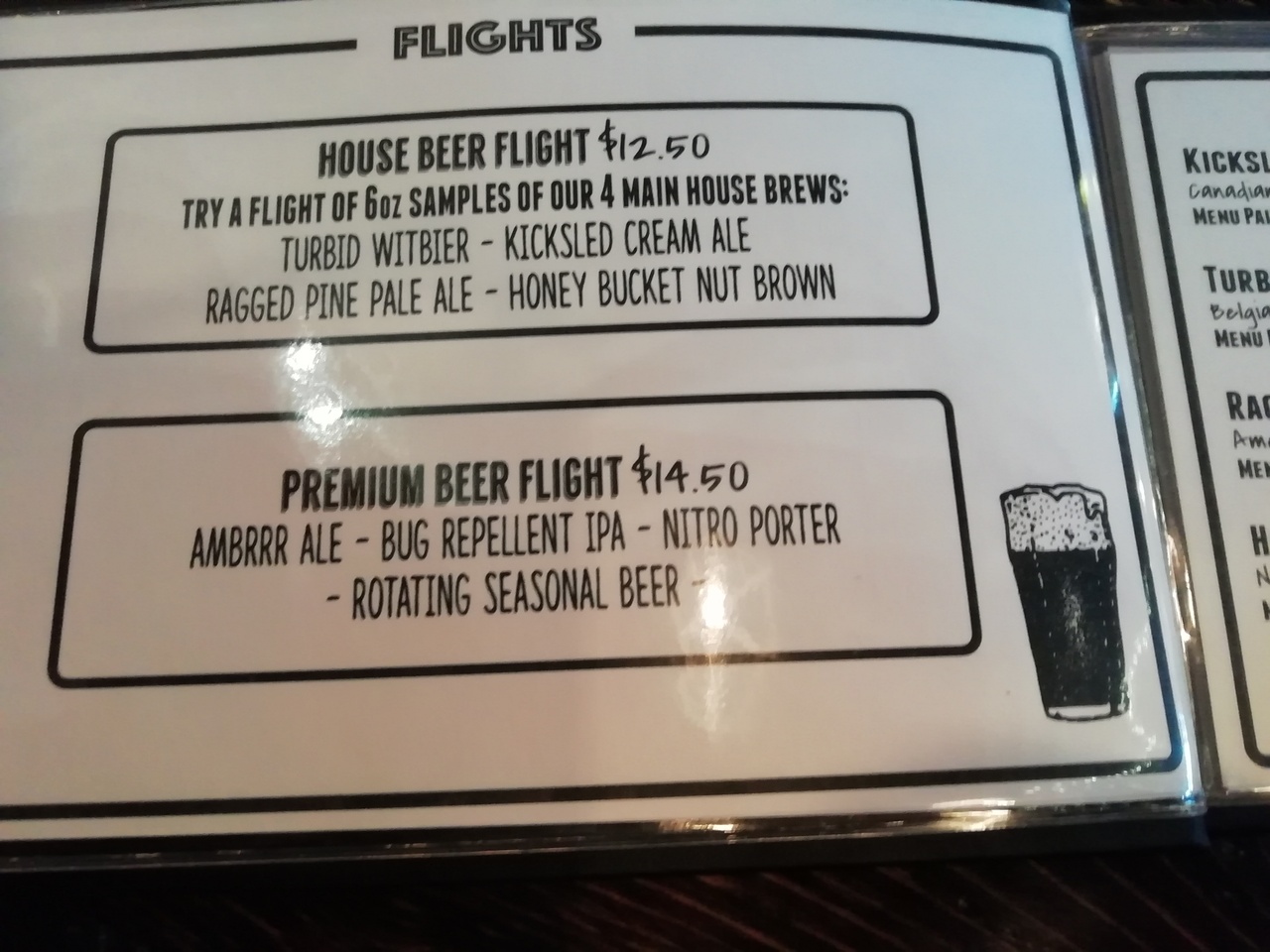 ビールはサンプラー(FLIGHT)が4種類づつ普通のとプレミアムがあるので、これだけで8種類飲めちゃいます。