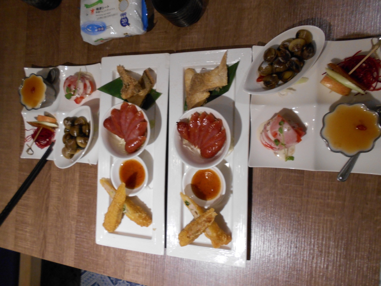 「擔仔麺」「黃金蝦捲 (揚げエビ巻き)」「滷肉飯(魯肉飯?)」「台湾ソーセージ」など10品が出ました。