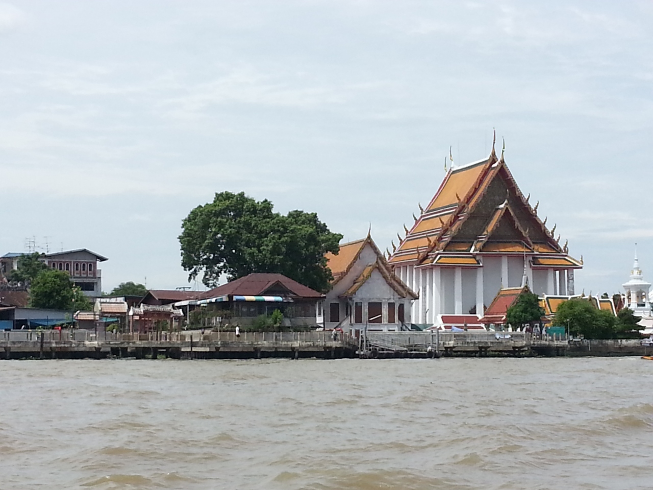 ターティアン船着き場を出て、すぐの所に大きな寺院がありました。ガイドブックにも紹介されていて、ワット アルンの船着き場からアクセスできるようです。本堂には巨大な仏像様が居るようです。