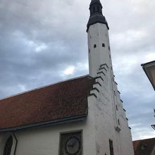 タリンの三人兄弟の家から旧市庁舎があるラエコヤ広場へ向かう途中で見つけた教会です。ラエコヤ広場のすぐそばにあります。ちょっと変わった形をした真っ白な教会です。聖霊教会という名前にふさわしい質素な感じが素敵でした。時計が目立ちます。