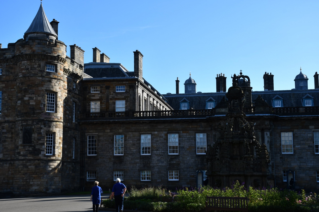 ロイヤルマイルの始点をお城とするならば、反対側の突き当たりにあります。ゆったりと坂を下りていきます。メアリー女王やアン女王など、スコットランド歴代王家の居城でした。今も、女王陛下や王族方がご訪問の際に滞在なさるそうです。
