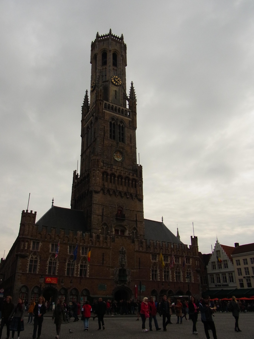 ブルージュの鐘楼は、マルクト広場に面して建っています。高さもあるため、広場周辺からも一際目立つ建物です。塔の下部は四角形、上部のみが八角形となっているのが、特徴的な建物です。定期的に鐘の音が響き渡り、美しい街並みに、より優雅な雰囲気をもたらしています。