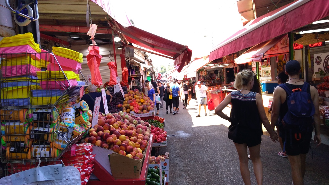 レンタル自転車が借りれなかったので、ハ・シャローム駅から徒歩で行きました。ハ・シャローム駅からは徒歩25分くらい。カルメル市場の通路は狭くかったです。日常生活品や土産物が売っていました。