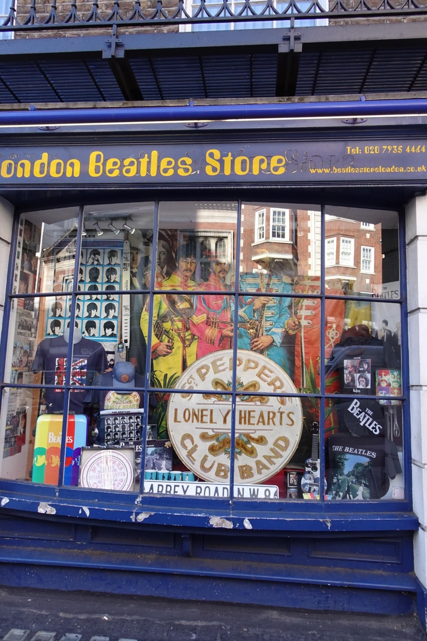 ベイカーストリートの駅近く、大人気のシャーロックホームズ博物館のすぐそばにあります。ビートルズのグッズが沢山ありすぎるほどの店内です。