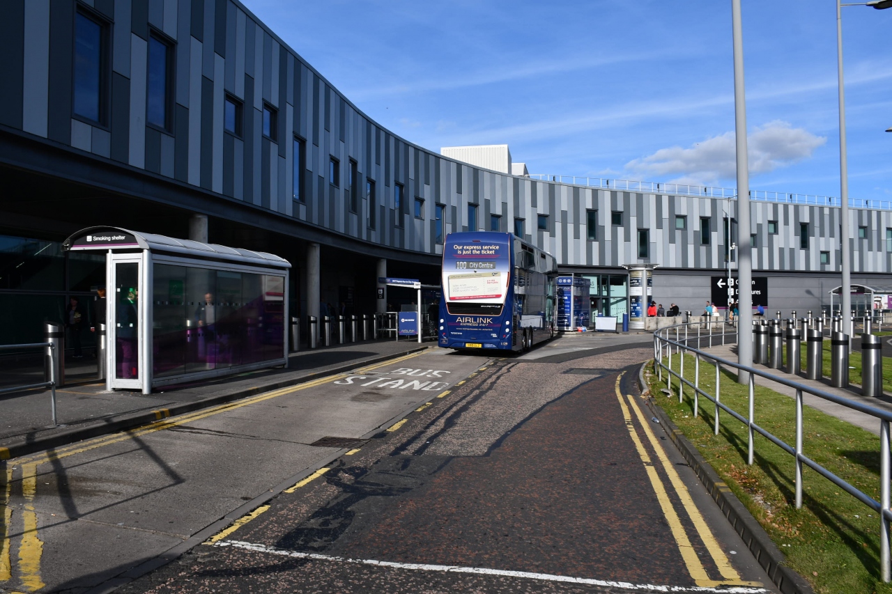 便利な空港行きのバスは百番、ウェイバリ駅の近くから出ています。王立アカデミーと国立美術館の間辺りです。運賃は片道四ポンド半ですが、現金でお釣りが出るや否やは分かりません。エディンバラ国際空港は市内から近いので、半時間ほどで到着します。