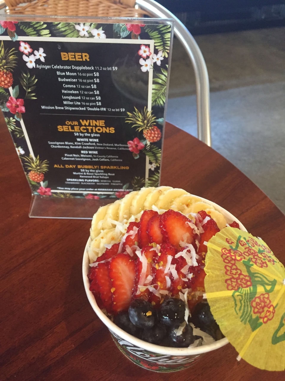 ハワイアンアロマカフェ!こちらは、ずっと行ってみたいと思いながら前回3月に初訪問して、お気に入りのお店となりました。こちらは店員さんもフレンドリーで気の利く方に、ワッフル、アイスラテと美味しく、なんと言ってもアサイボールが、可愛いだけでなくとっても、美味しかった~!アサイボールは、アイランドヴィンテージ、ボガーツカフェとハワイアンアロマカフェこの3店が私の大好きなアサイボールのお店です。