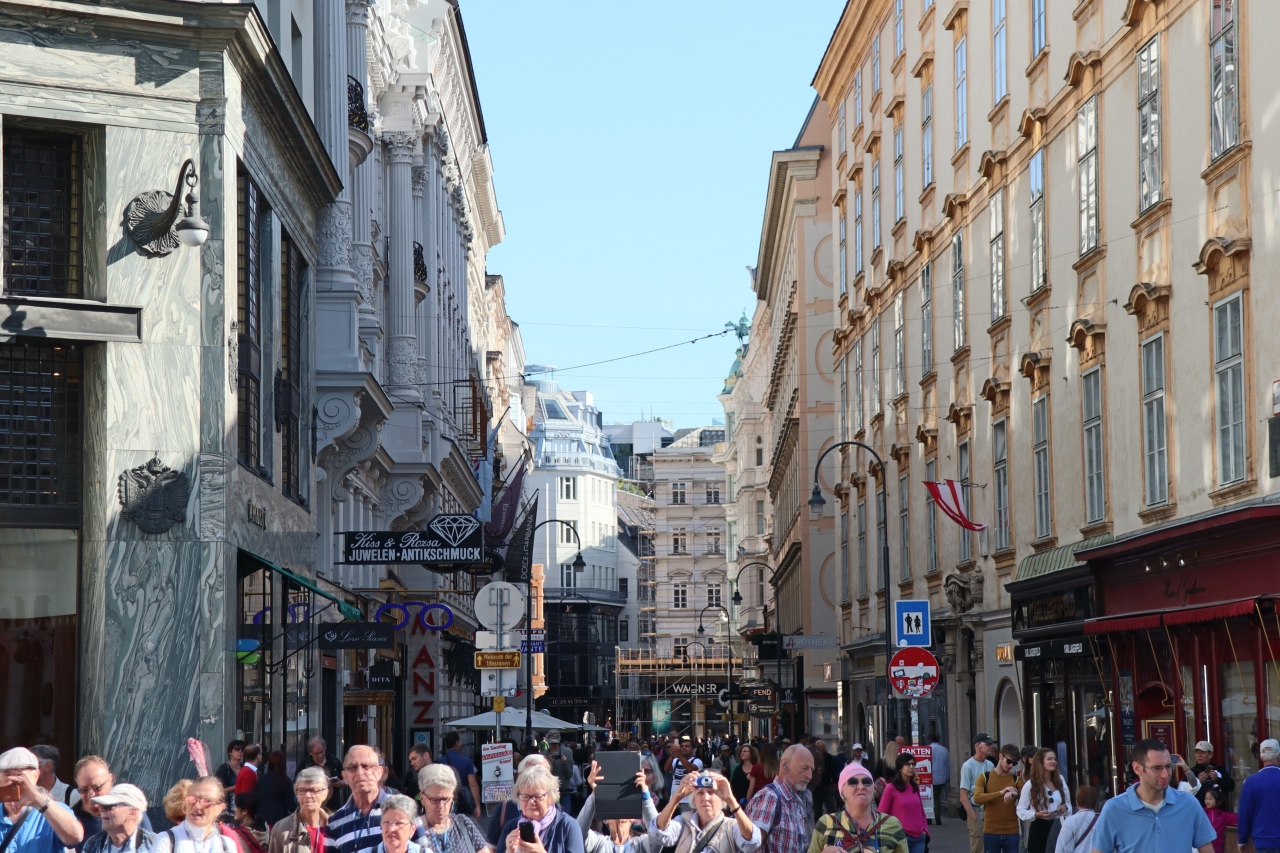 ホーフブルグ宮殿のミヒャエル広場から延びている道。広場出てすぐにザッハートルテで有名な店の一つ、デメルが左側にあります。通りとしてはそれほど長くなく、しばらく歩くと、右側にグラーベン通りに繋がります。街歩きのスタートとしても逆回りの終点としてもいいかと思います。