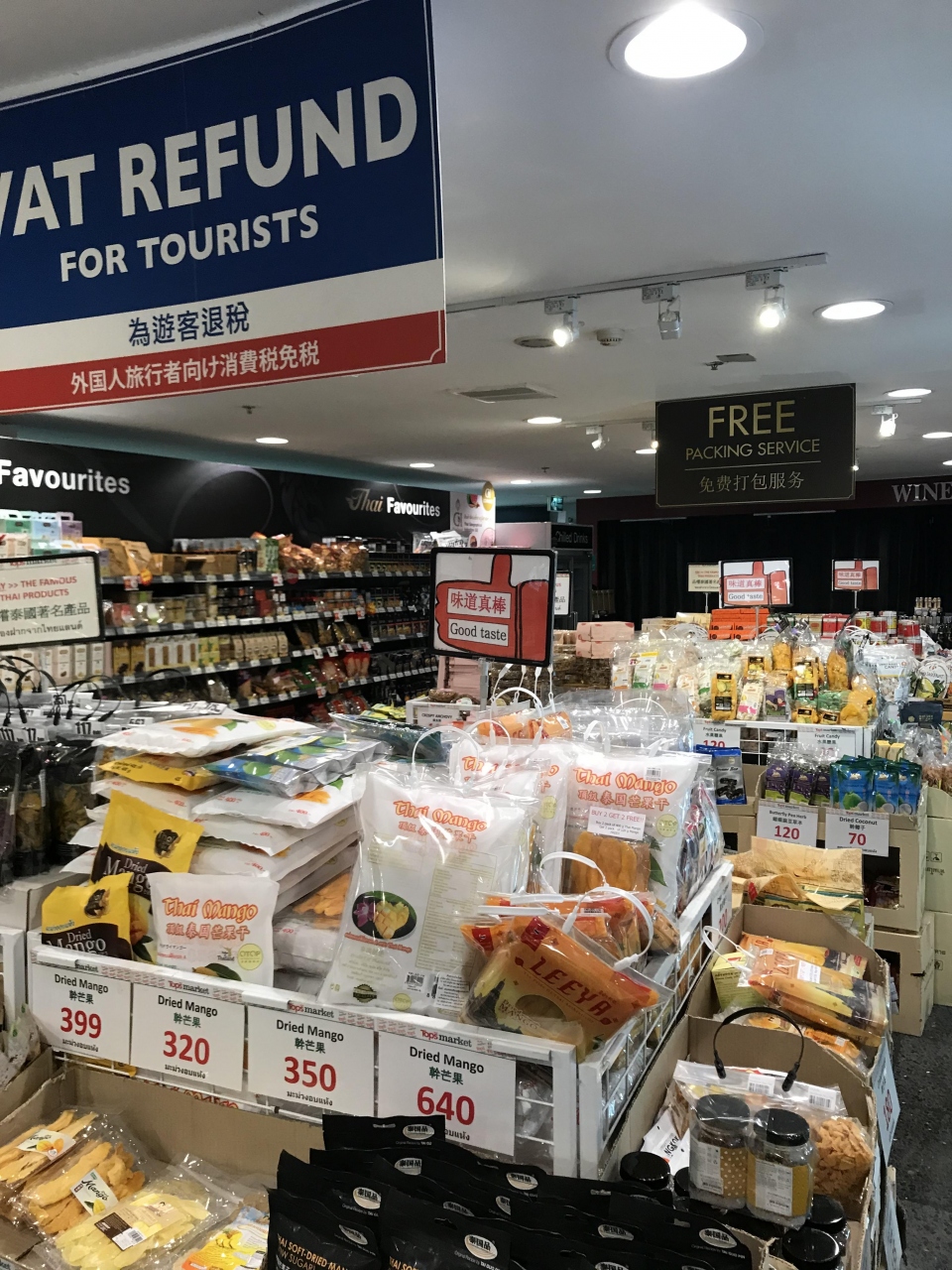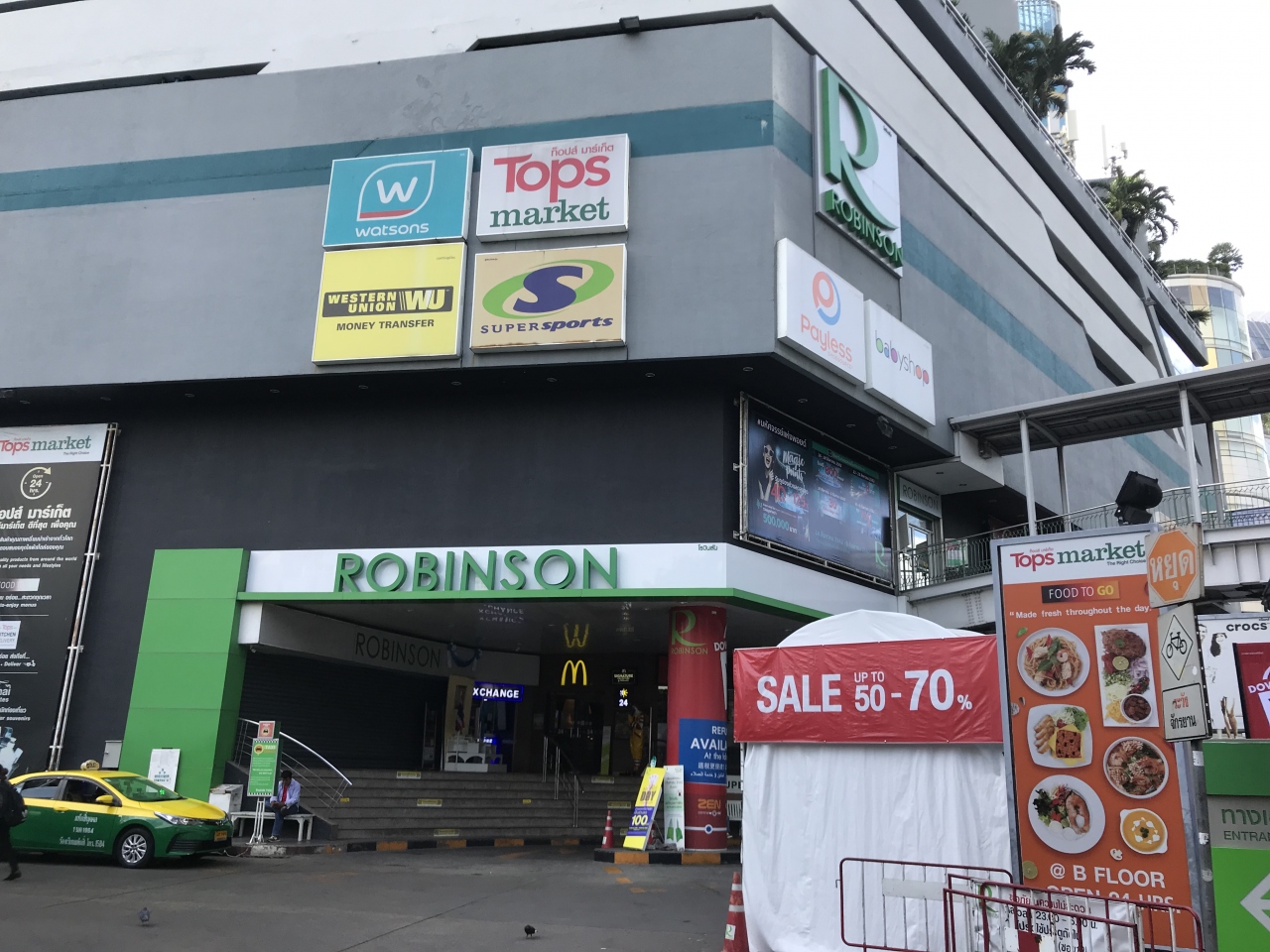 ロビンソンの地下にあるスーパーマーケットです。ドライマンゴーやバナナなどのタイ土産を豊富に取り扱っており、お土産の購入に便利なスーパーでした。在住者向けなのか、日本の商品を取り扱うコーナーもありました。