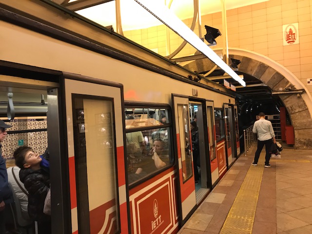 歩いてガラタ橋を渡り、聖アントワーヌ教会へ行くのにこのテュネル (地下ケーブル)を利用しました。海側のカラキョイ駅とイスティクラル通り側のベイオール駅の一駅だけを結ぶ地下ケーブルです。想像以上にスピードを出します。海側からだと登りになるので、歩くよりも楽が出来たと思います。