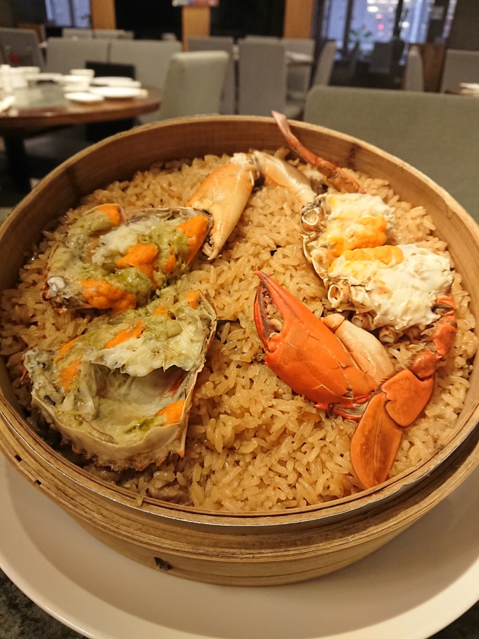 ガイドブックで見かける、欣葉の蟹おこわ。
