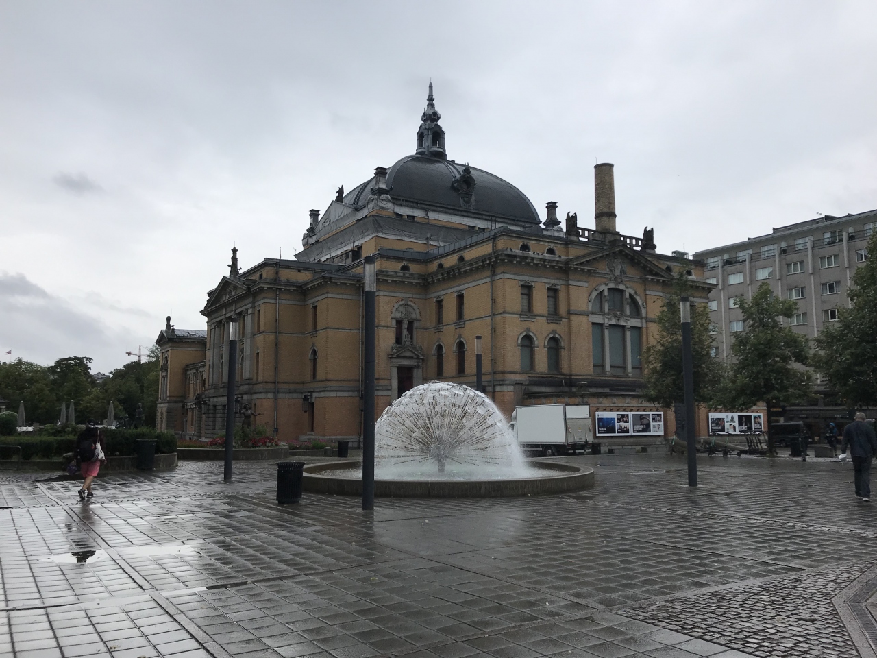 「Nationaltheatret(国立劇場)駅」のすぐ前です。どの角度から見ても重厚感のある建物は、ネオ・ルネサンス様式だそうで、見ごたえがありました。噴水を前にした姿も美しかったです。