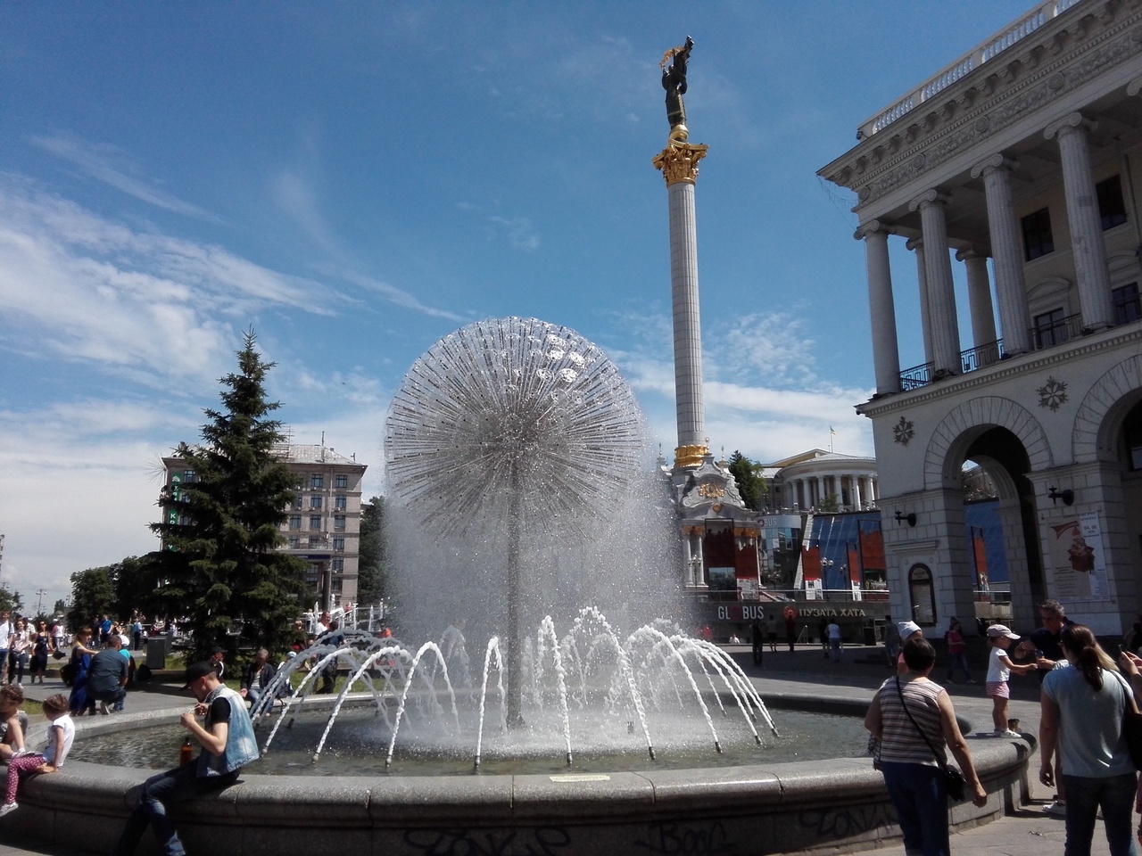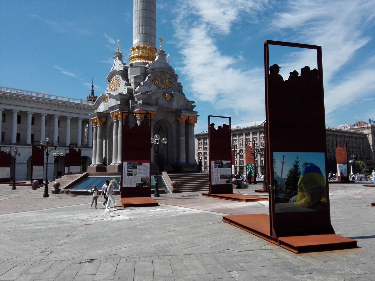 フレシチャーチク通りの奥まったところにある独立広場、そこに見上げるほどそびえ立つ独立記念碑があります。各種イベント広場になっていて、記念碑の存在が見え隠れしますが、テント等を取り除くとその姿に驚かされます。ここが騒動のあった地とは思えません。