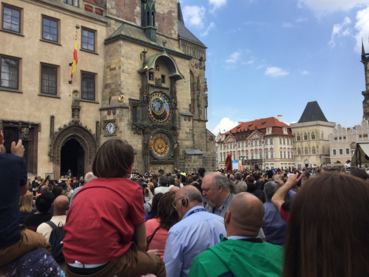 プラハ旧市庁舎は旧市街広場の西側エリアにある。もともと1338年に旧市街の自治オフィスとして創立されたもので、その後、塔や出窓の礼拝堂からなる複合建築として改築された。外壁の装飾は大変美しい。また、外壁には天文時計があり、毎時00分に現れる聖人の人形が可愛くて素敵である。展望台からは旧市街広場の素敵な景色を見渡せる。ゆっくり見学するのもいいかもしれない。