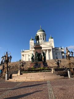 ヘルシンキ大聖堂のすぐ前にある広場で、ロシアの皇帝アレクサンドル2世の大きな存在感のある銅像が建っていました。大階段の傾斜はけっこうキツめですが良い雰囲気で、ちょうど結婚式の写真を撮っている人たちがいました。