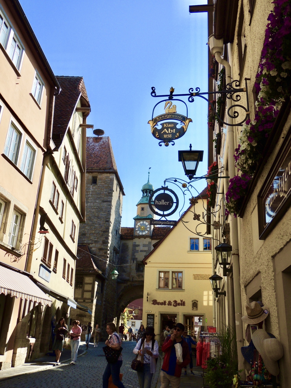 マルクト広場からレーダー門に向かって歩いていると塔が見えてきました。これは最初の環状市壁に沿って建設された見張り塔だそうです。この辺りは、ローテンブルクのプレーンラインと並ぶ人気の撮影スポットだそうです。
