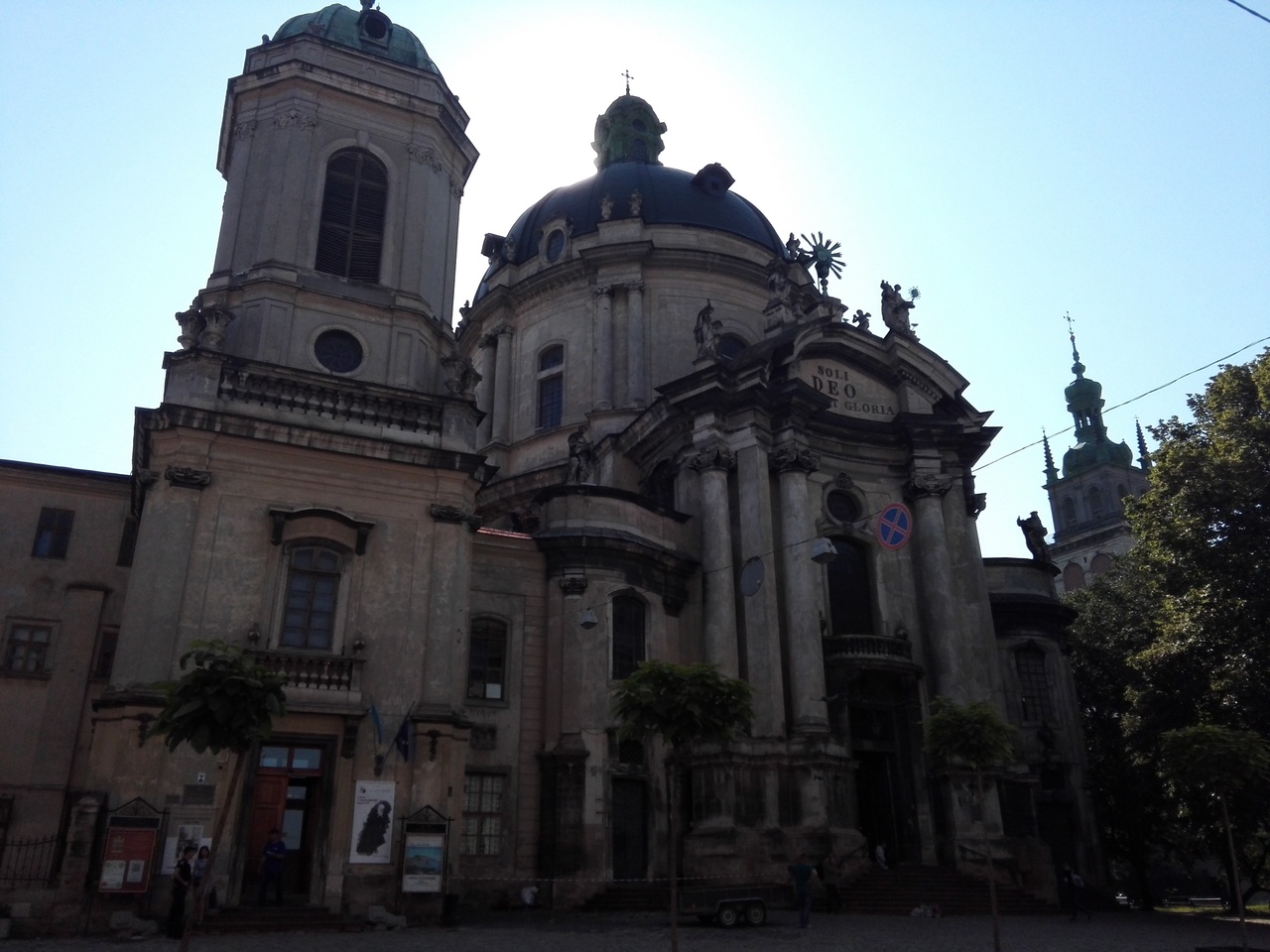 旧市街中心地東、トラムの通りにあります。ニキフォルの像や武器庫等が同じ敷地にあって区切りがわからないほど繋がっています。目の前の広場は、露天があり古本等が販売され、庶民的なエリア感があります。そんな中にある聖堂ですが、大きくて迫力があります。