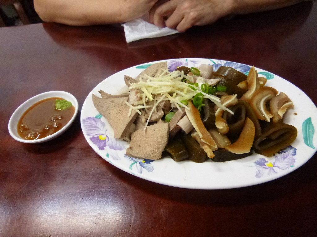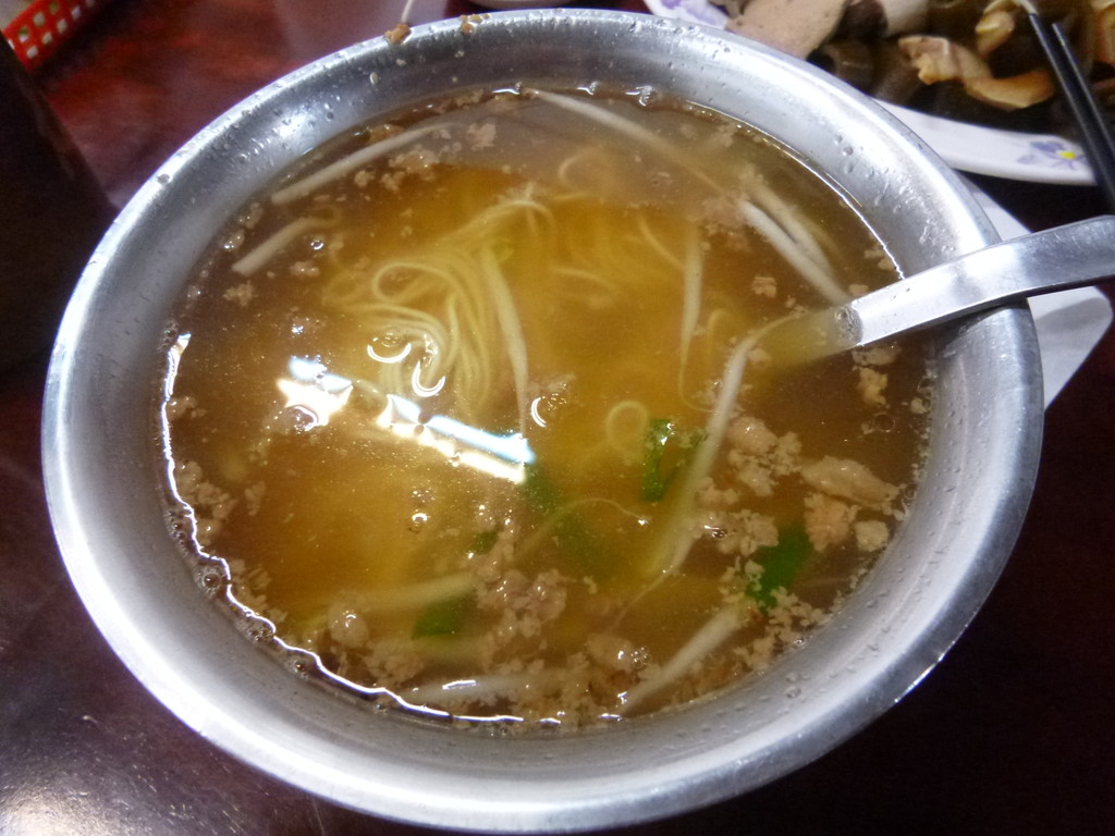 私は、陽春麺の大、妻は小、おかずに昆布、レバー、内臓の注文し、美味しくいただきました。