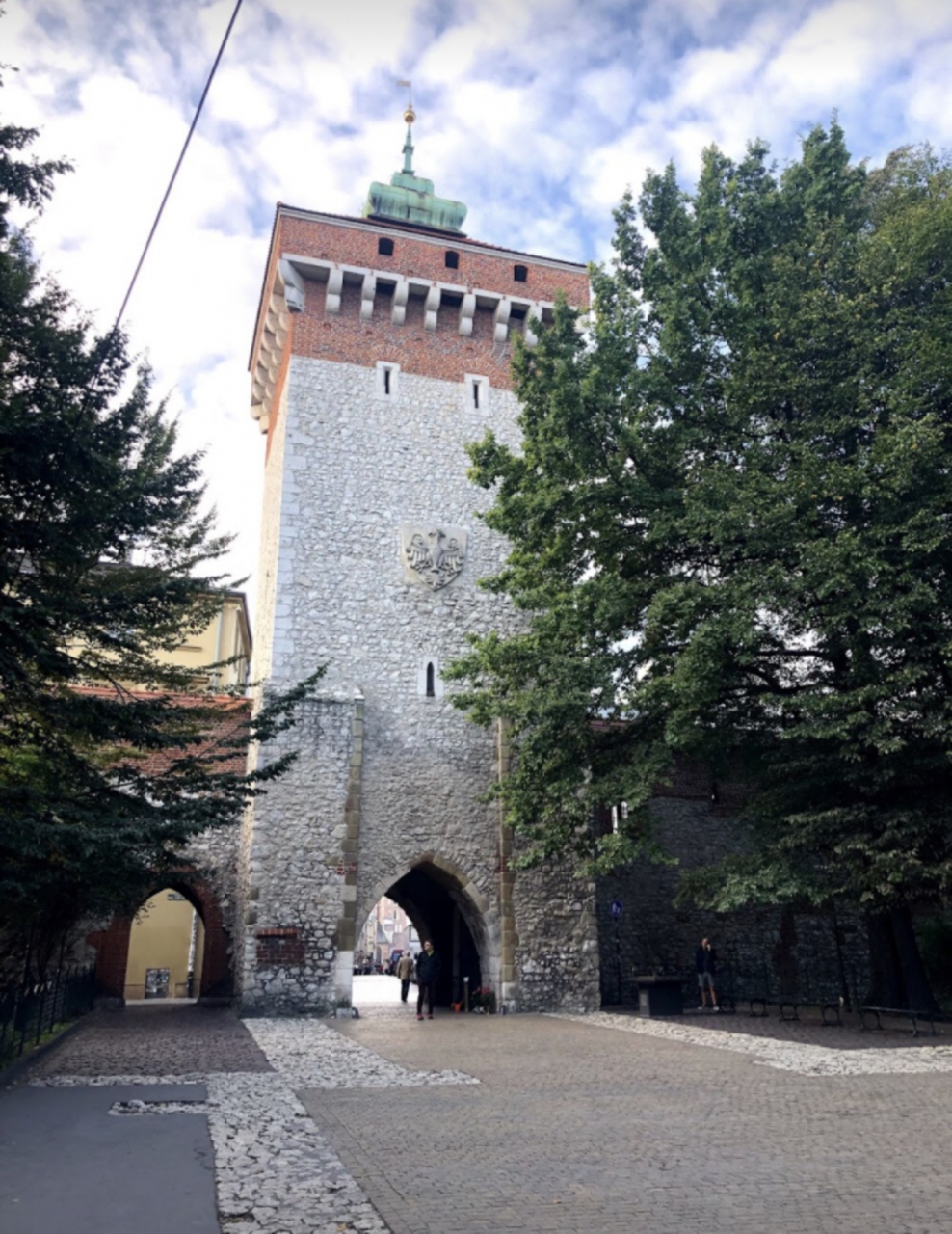 クラクフ駅から徒歩10分くらいだと思います。旧市街への入口で、存在感がありました。フロリアンスカ門をくぐって、続くフロリアンスカ通りを通ると、旧市街の中心である中央広場へたどり着きます。歴史感じる雰囲気でした。